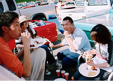 | 皆でランチ、おいしそー。 | CONTINENTAL KINGSの柿下社長、ナイスなショットを有難うございます。 | 二人仲良く愛車のお化粧直し? |