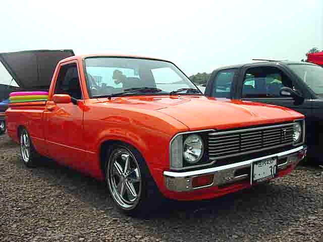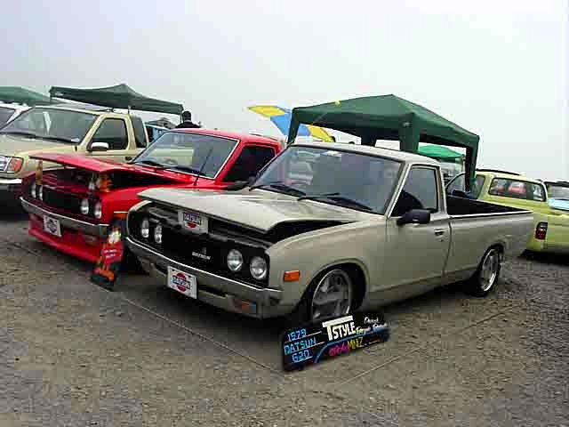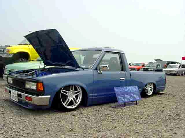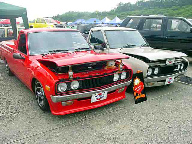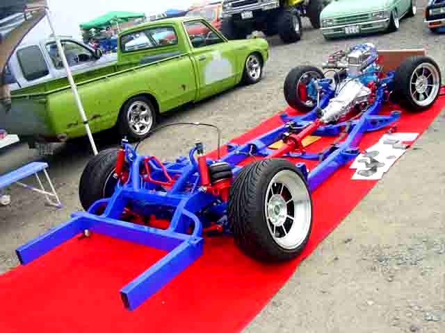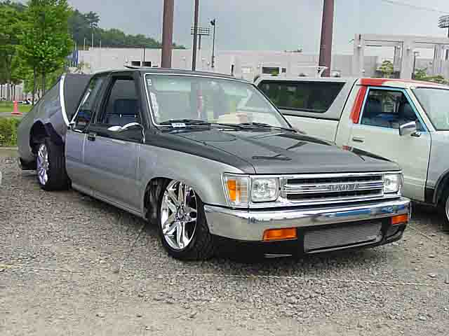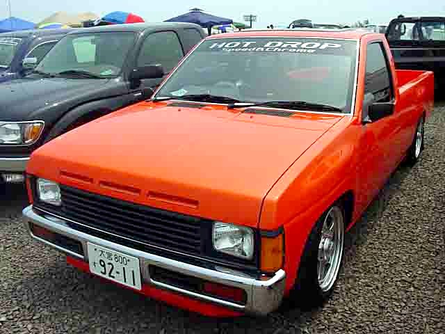 発色のいいオレンジボディにBOYDのTURBO TECH16"がスマートに収まるD21LONG。バンパーは前期用にチェンジ予定だそうです。 |