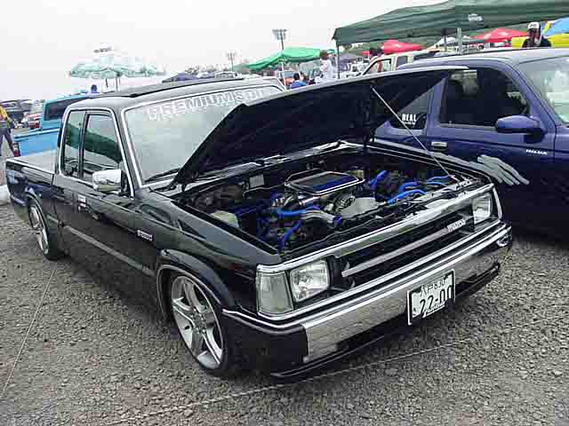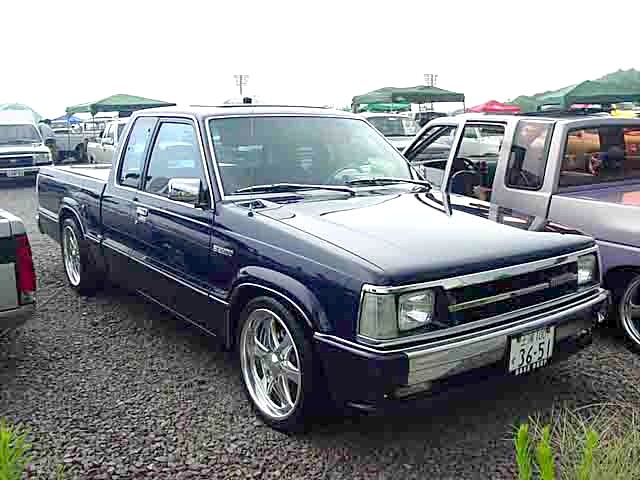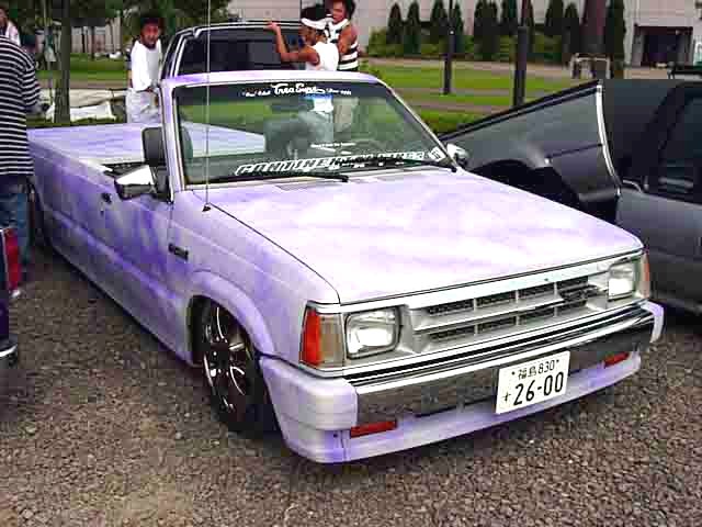MAZDA B好きなコンチ柿下氏のベースマニアぶりを臭わす1台。純正ストライプも鮮やかなLE-5グレードの上物OGぶりは、分かるヒトには分かるUSモデルのカッコよさを物語っています。 |