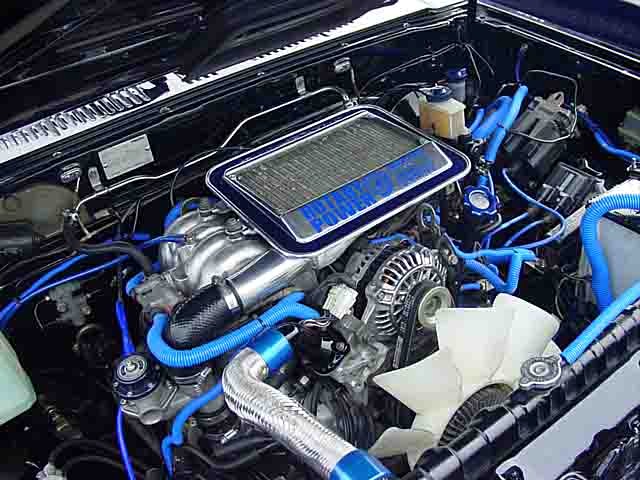 | ブラックボディのCAB PLUS MAZDAは、FCセブンの13Bロータリーターボを5MTごと移植済み!青森から初参加の出町さんがDIYで行った意欲作です。 |