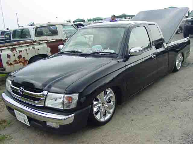 | ラディカルなNEW HILUX見参! オーナーの太田さんがDIYでCHANNELを行い、フードレスのまま山形からやってきた勢いみなぎる1台です。 |