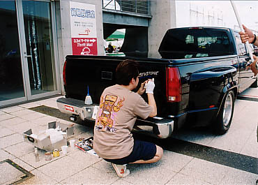 午後にはPinstriperの方々も、外の会場に出てのお仕事。